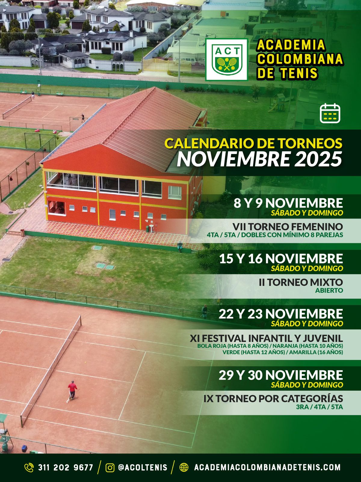 Uriel Oquendo ama el tenis y toda su vida ha estado dedicado a esta actividad que le apasiona: primero como jugador y luego como entrenador y formador de grandes tenistas. Su Academia Colombiana de Tenis (ACT) es hoy uno de los centros de entrenamiento más destacados del país y fuera de él, con programas para colegios y jardines infantiles, niños, jóvenes y adultos, quienes encuentran aquí el espacio ideal y los mejores entrenadores.