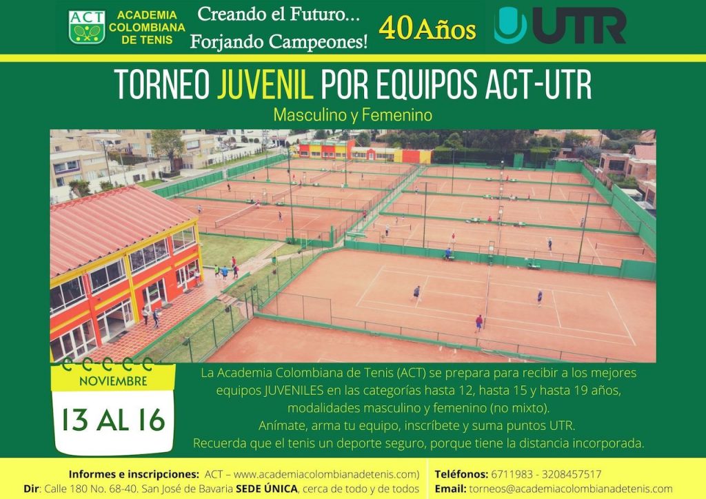 Al igual que los grandes torneos por equipos, como los Panamericanos, Suramericanos, o los Juegos Olímpicos, la Copa Davis (masculino) o la Fed Cup (femenino), que nos hacen vibrar de emoción y alegría, la Academia Colombiana de Tenis (ACT) se prepara para recibir a los mejores equipos en las categorías hasta 12, 15 y 19 años, modalidades masculino y femenino.